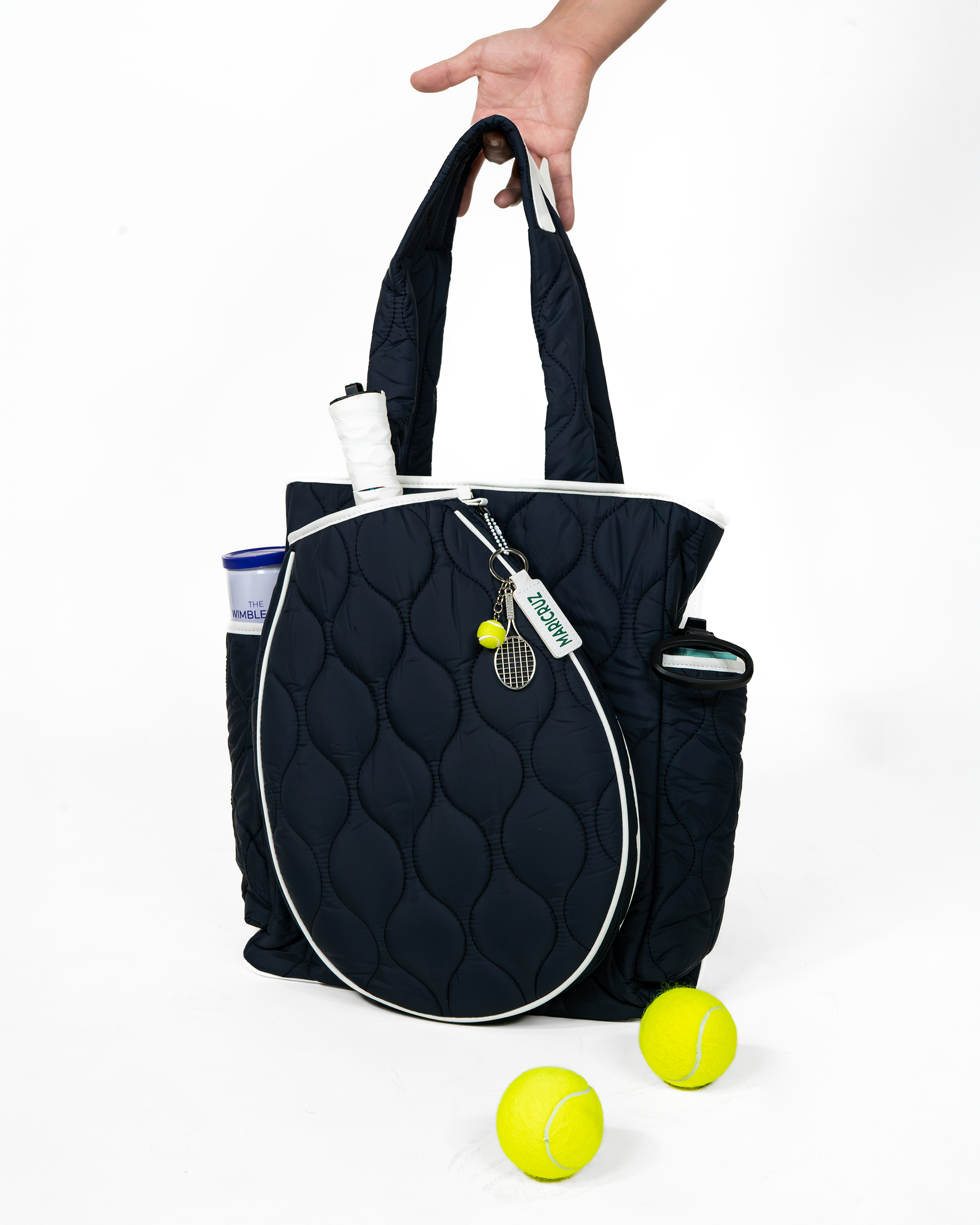 Tu nueva aliada dentro y fuera de la cancha. La bolsa deportiva azul marino combina diseño sofisticado, practicidad y comodidad para acompañarte a cada entrenamiento o partido. Su acabado acolchado con textura ondulada y sus detalles en blanco le dan un aire clásico y elegante, ideal para personas con estilo activo y moderno.