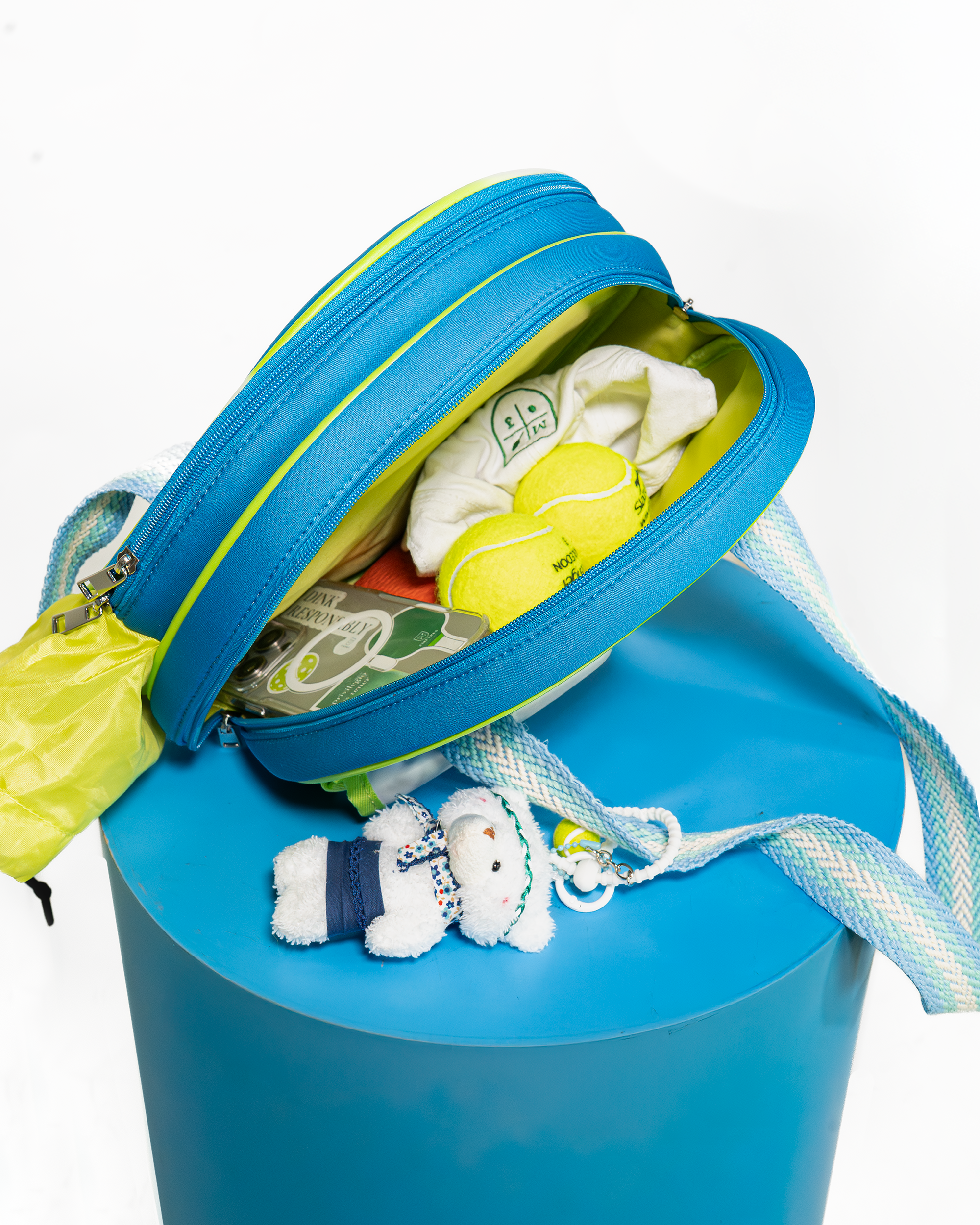 ¡Dale color y energía a tus días de juego! Nuestra bolsa redonda azul con detalles en verde lima combina diseño moderno, practicidad y un toque divertido. Su forma compacta y estructurada es perfecta para llevar todo lo esencial: pelotas, botella, toalla o accesorios deportivos.